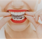 "Invisalign" e' una innovativa terapia ortodontica che permette di riallineare i denti senza ferretti, utilizza infatti una serie di mascherine in polimero trasparente e rimuovibili, costruite sull’impronta dentale del paziente, che abbracciano i denti come un guanto su una mano.
